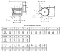 UN12V3BC Nidec 1/2 Hp 1200 RPM 56C (Rigid Base) 208-230/460V TENV Inverter-Duty 3-Phase Motor