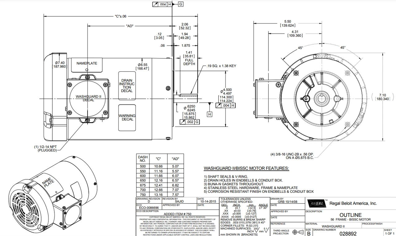 - NEMA 56C frame, C-face, Stainless Steel Keyed Shaft 5/8″ Diameter x 1 7/8″