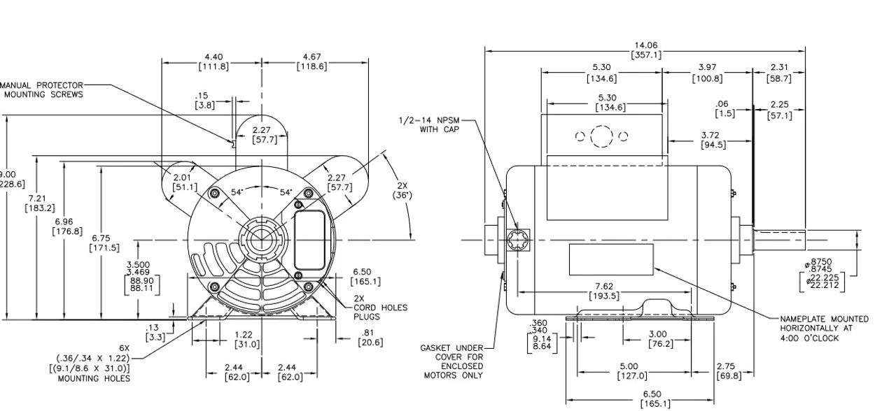 - NEMA 56HZ Frame, Shaft 2 1/4 x 7/8″ Diameter