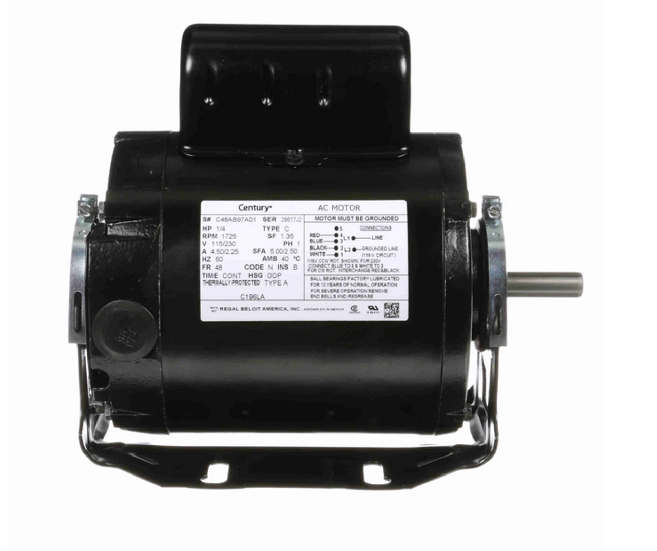 - 1 hp 1800 RPM, 4.5/2.25 amps 115/230 Volts 60 Hz Capacitor Start/Run Single Phase Motor