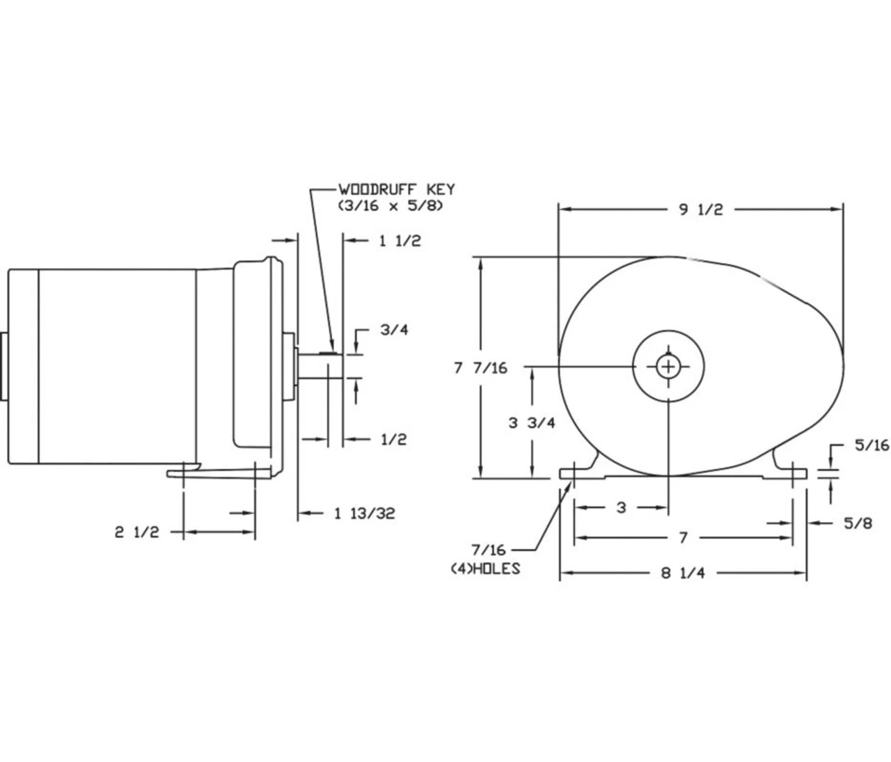 - 1/2 hp, 62 RPM, 8.3 amps, 115 volts, 60HZ.