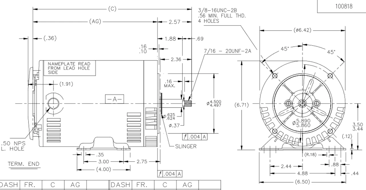 - NEMA 56J Frame, 5’8″ dia. by 1-5/8″ long threaded stainless steel shaft, 60 Hz