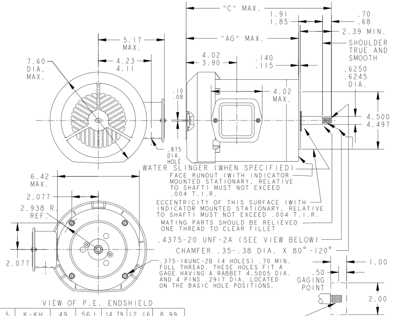 - NEMA 56J Frame, 5’8″ dia. by 1-5/8″ long threaded stainless steel shaft, 60 Hz