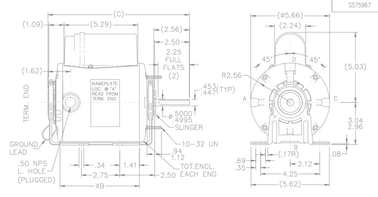 - NEMA 48Z Frame, TEAO, Shaft 1/2″ Diameter x 2 1/2″ with double flats