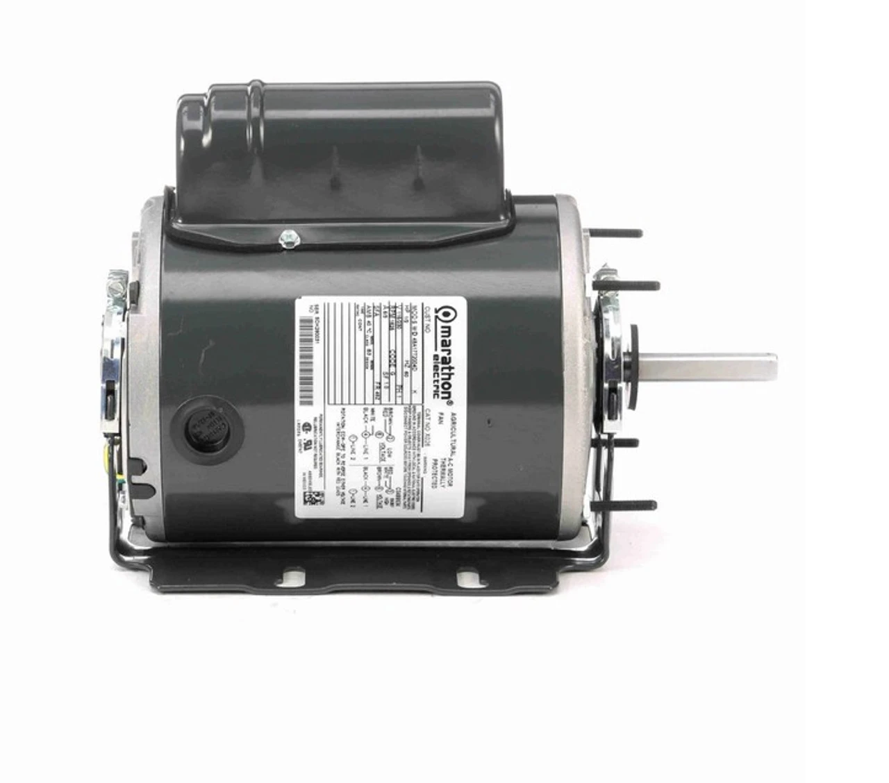 Single phase motor designed for belt drive fans in farm buildings, TEAO = Totally-Enclosed Air-Over so motor must be in air stream for proper cooling, 048A17T2004