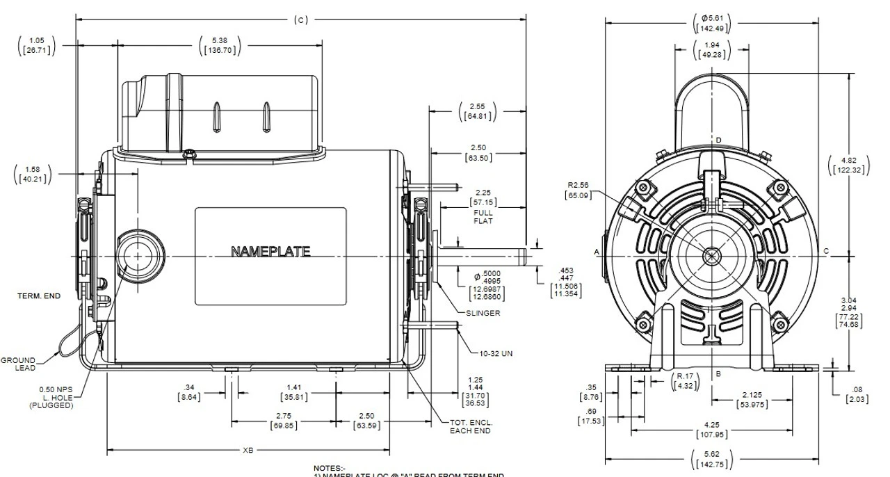 - NEMA 48Z Frame, TEAO, Shaft 1/2″ Diameter x 2 1/2″ with double flats