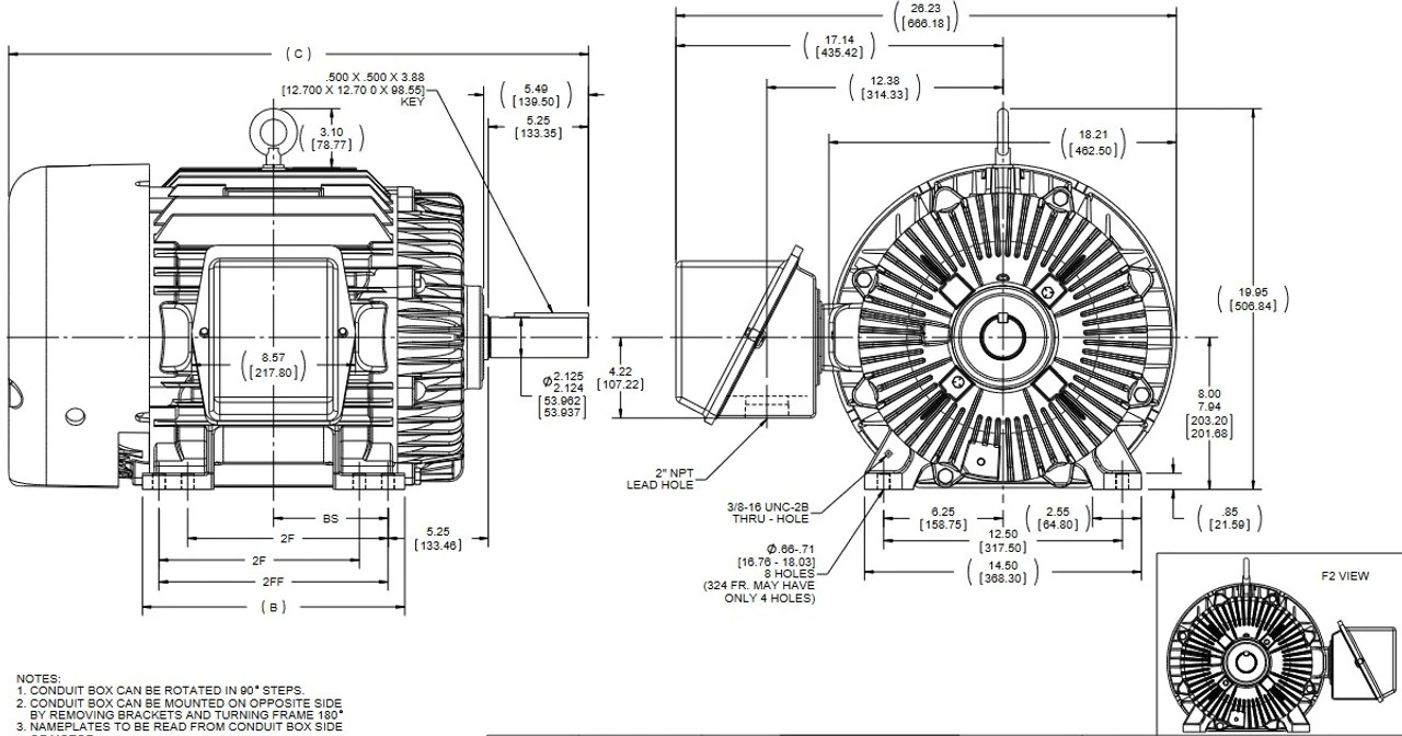 - NEMA 324T Frame, Shaft 5 1/4″ x 2 1/8″ Diameter, 2 speed