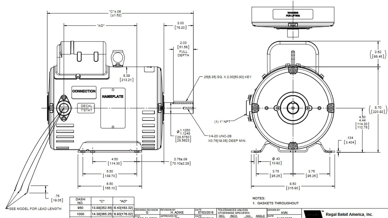 - NEMA 184TZ Frame, DPAO, Shaft 1 1/8″ Diameter x 2 3/4″